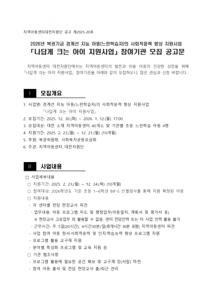 [공지] 나답게 크는 아이 지원사업 단기 근로자…